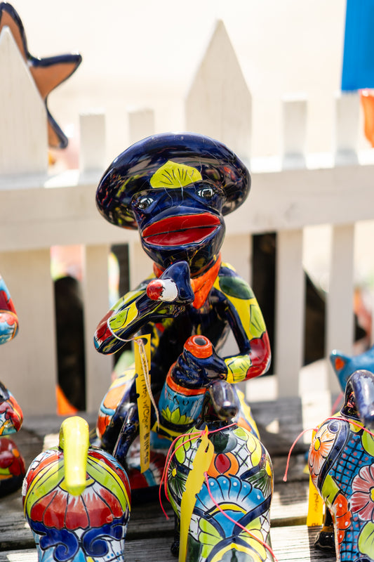 Talavera Frog w/Cigar & Bottle